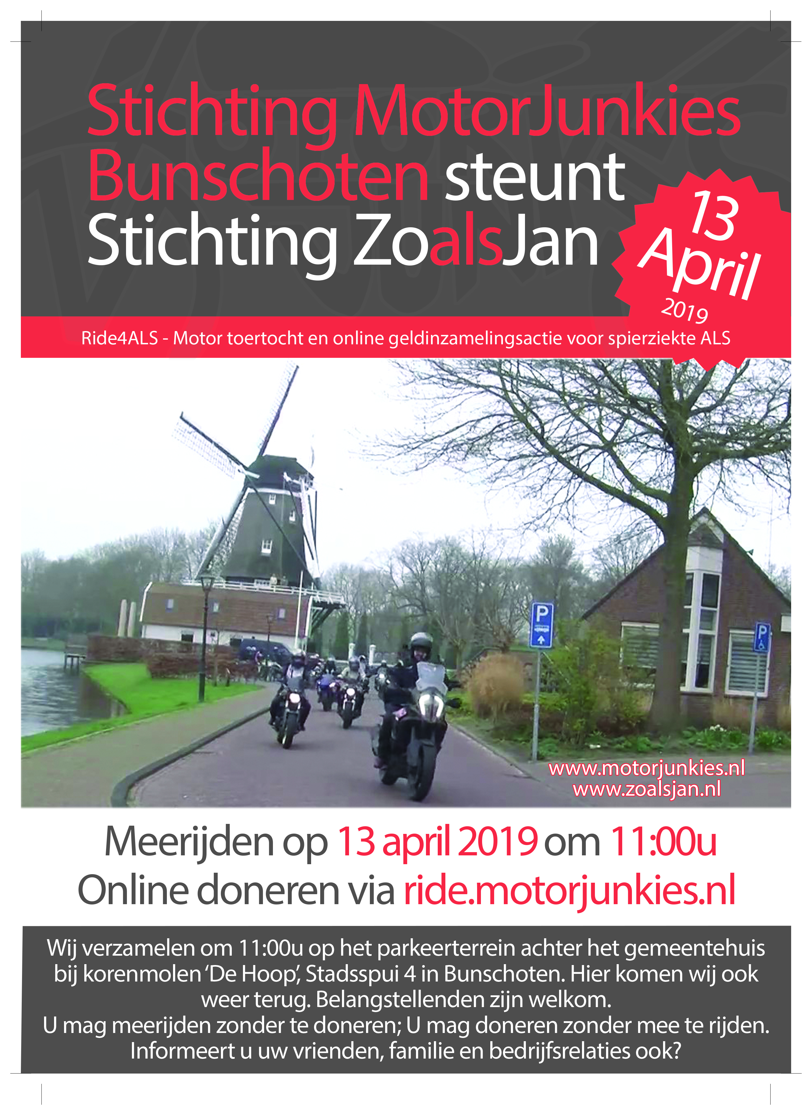De poster voor Ride4ALS editie 2019 is vanaf vandaag beschikbaar voor download en digitale verspreiding. Wij gaan nu druk op zoek naar een sponsor voor papieren versies die door het land verspreid kunnen worden.